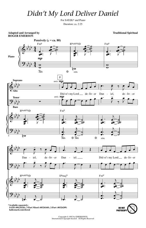 Didnt My Lord Deliver Daniel Festival Choral Satb Arranger Ro