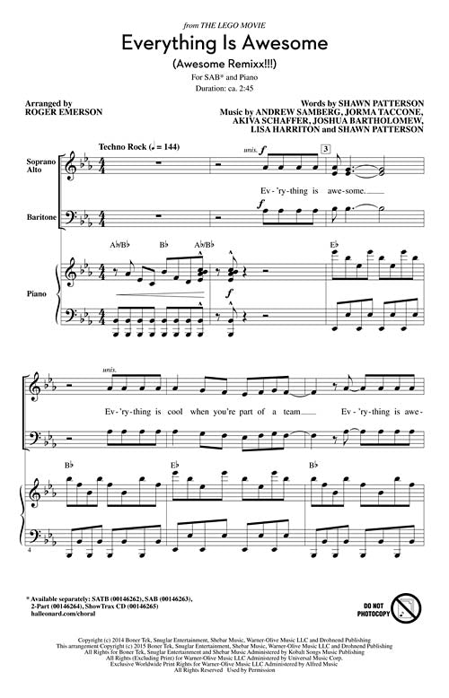 This Title Comes In Quantities Of Five (5) Copies(1 Order=5 Copies) Everything Is Awesome from The Lego Movie Publisher: Hal Leonard Category: Choral Series: Pop Choral Series Format: Paperback Inventory # : 00146263 UPC: 888680069988 ISBN:...Regular price $23.99 -