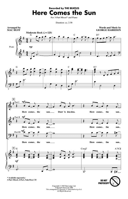Here Comes The Sun Discovery Choral 3 Part Mixed Arranger Mac Hu