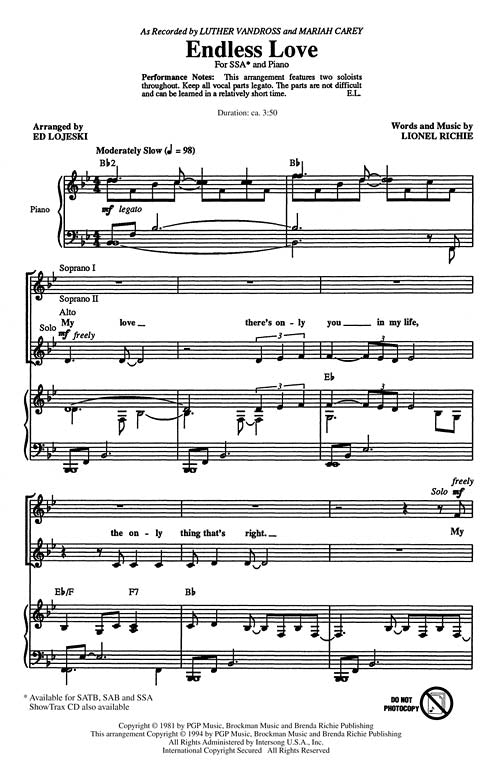 Endless Love Ssa Pop Choral Series Lionel Richie