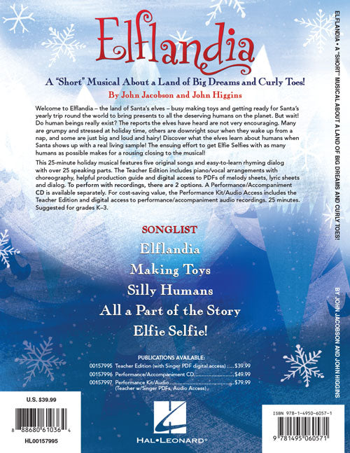 Elflandia A Short Musical About a Land of Big Dreams and Curly Toes! Softcover TEACHER BOOK WITH SGR CODE Welcome to Elflandia - the land of Santa's elves - busy making toys and getting ready for...Regular price $47.99 -