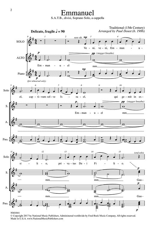 Emmanuel Publisher: National Music Publishers Category: Choral Series: National/Emerson Fred Bock Format: Octavo This haunting Advent carol has held a revered station for more than five centuries and has been arranged and reset by composers throughout...Regular price $29.99 -