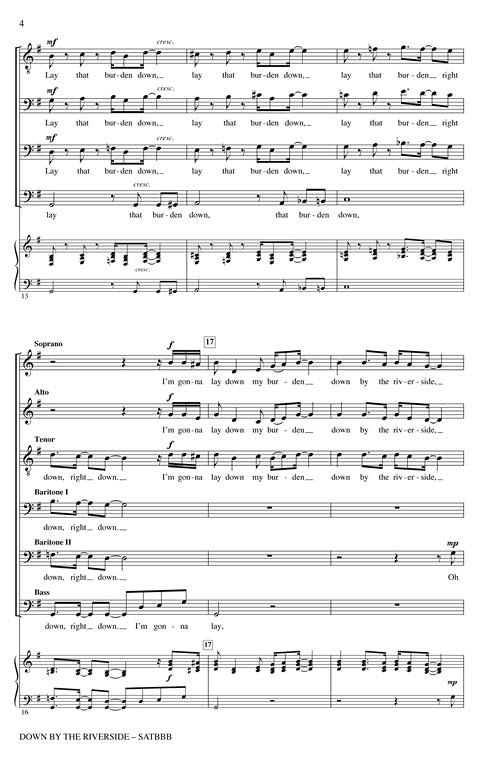 This Title Comes In Quantities Of Five (5) Copies(1 Order=5 Copies) Down by the Riverside The King's Singers Octavo SATBBB a cappella From the smooth layered opening to the spectacular jazz conclusion, this is a King's...Regular price $27.99 -
