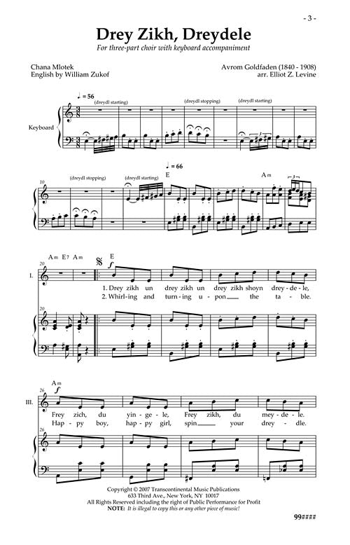 Drey Zikh Dreydele Transcontinental Music Choral 3 Part Treble A