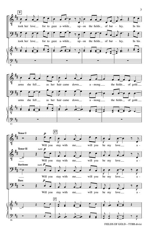 Fields Of Gold Voices Rising Ttbb Div A Cappella Sting