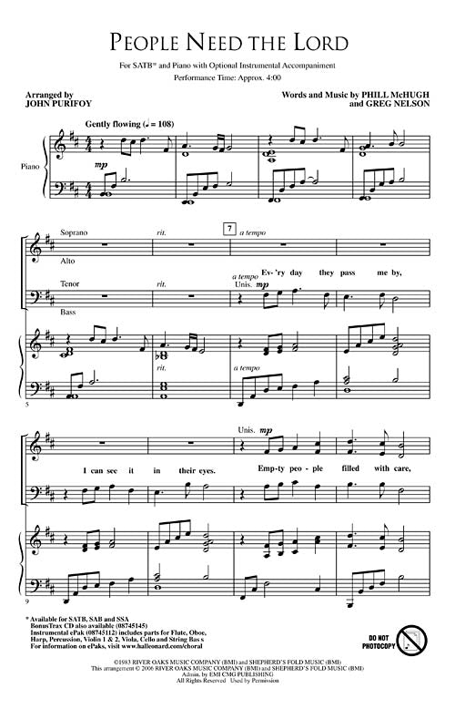 People Need The Lord Brookfield Choral Series Satb Steve Green