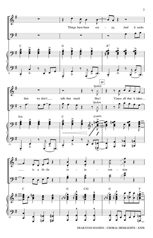 Dear Evan Hansen Broadway Choral Satb Benj Pasek