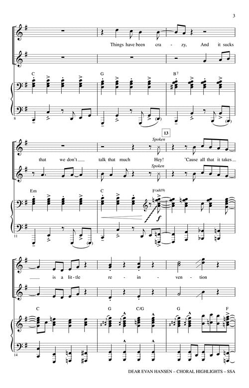 Dear Evan Hansen Broadway Choral Ssa Benj Pasek