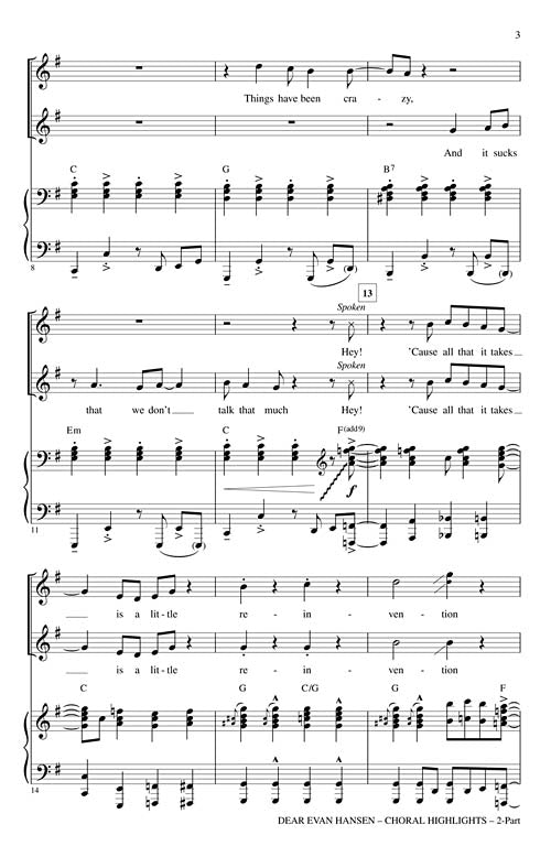 Dear Evan Hansen Broadway Choral 2 Part Benj Pasek