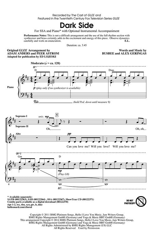 Dark Side Pop Choral Series Ssa Kelly Clarkson