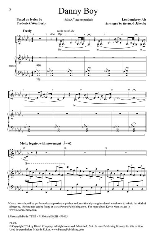 Danny Boy Publisher: Pavane Publishing Category: Choral Series: Pavane Choral Format: Paperback The response to Kevin Memley's setting of Danny Boy for TTBB voices in 2011 was so strong, we now offer voicings for SATB and...Regular price $27.99 -