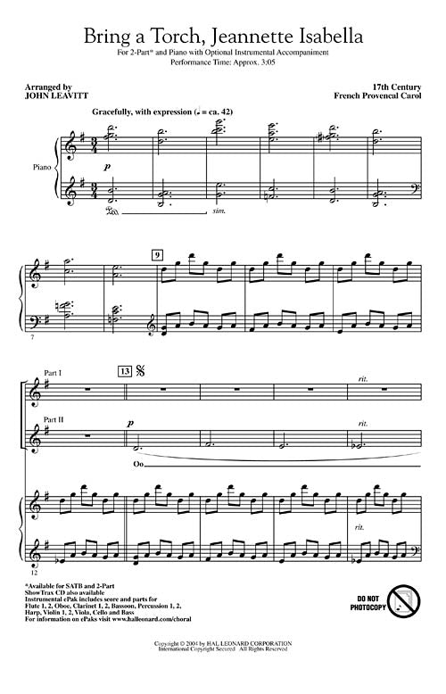 Bring A Torch Jeanette Isabella 2 Part Arranger John Leavitt