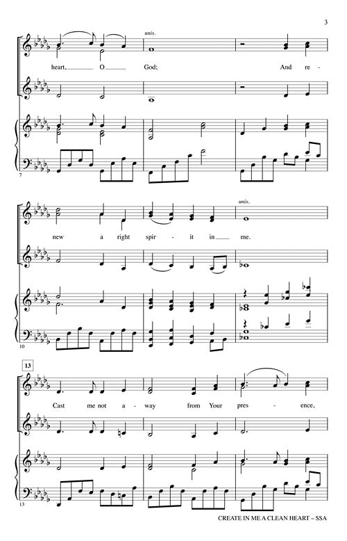 Create In Me A Clean Heart Brookfield Choral Series Ssa John Leav