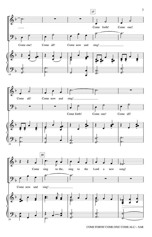 Come Forth! Come One! Come All! Publisher: Daybreak Music Category: Choral Series: Daybreak Choral Series Format: Octavo Buoyant and cheerful, this lilting tune and text is a sparkling call to praise! An engaging opening theme spins...Regular price $25.99 -