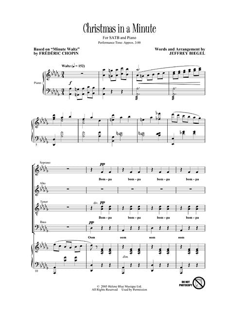 This Title Comes In Quantities Of Five (5) Copies(1 Order=5 Copies) Christmas in a Minute Composer: Jeffrey Biegel Frederic Chopin/arr. Jeffrey Biegel Publisher: Category: Choral Series: Secular Christmas Choral Format: Voicing: SATB a cappella Based on...Regular price $19.99