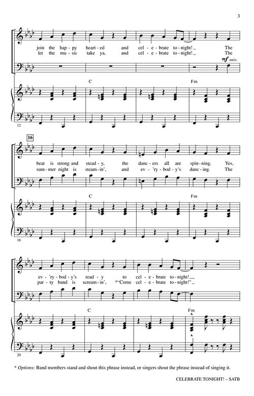 This Title Comes In Quantities Of Five (5) Copies(1 Order=5 Copies) Celebrate Tonight! SATB Let's get this party started! Join the celebration in this original fiesta-style work that will bring color and life to your concert....Regular price $22.99