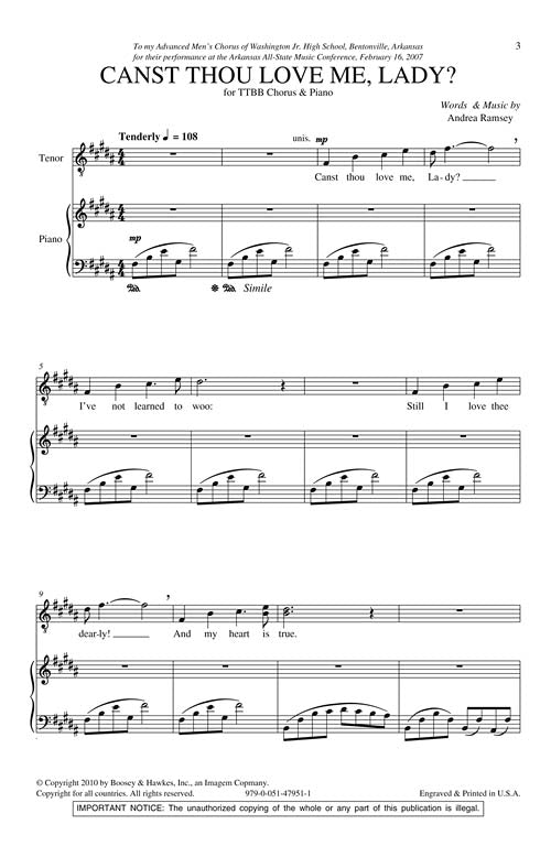 Canst Thou Love Me Lady Choral Music Experience In Low Voice An
