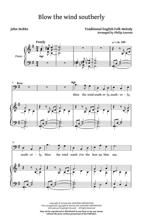 This Title Comes In Quantities Of Five (5) Copies(1 Order=5 Copies) Blow the Wind Southerly SATB This setting of the traditional folksong from the British Isles has a gentle rocking feel and expresses the longing for...Regular price $27.99 -