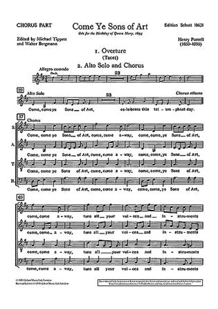 Come Ye Sons of Art Choral Score Sheet Music Henry Purcell