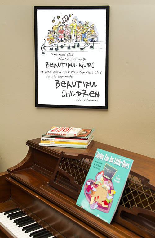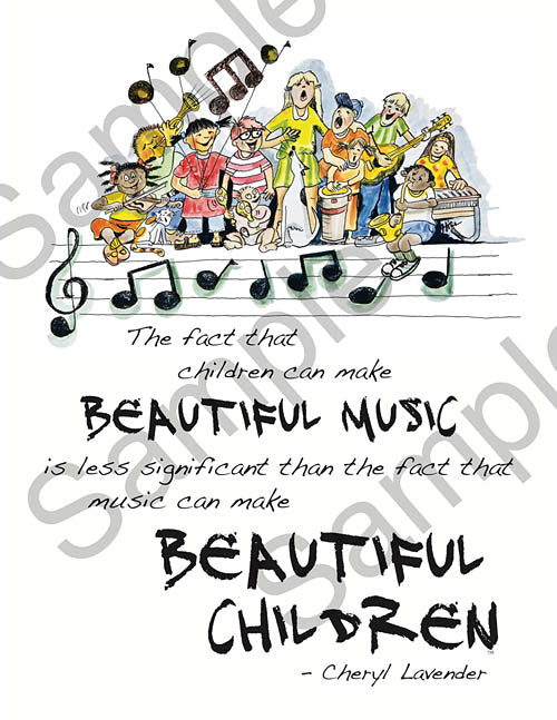 Beautiful Music, Beautiful Children Poster 18x24 Framed Poster 18 x 24 colorful, illustrated poster with Cheryl Lavender's inspirational quote, The fact that children can make beautiful music is less significant than the fact that music can...Regular price $23.99 -