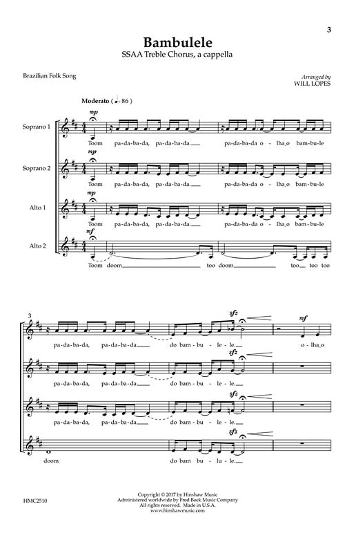 This Title Comes In Quantities Of Five (5) Copies(1 Order=5 Copies) Bambulele Arranger: Will Lopes Will Lopes Publisher: Hinshaw Music Category: Choral Series: Hinshaw Music Format: Octavo Voicing: SSAA Your high school or university women's chorus...Regular price $26.99 -