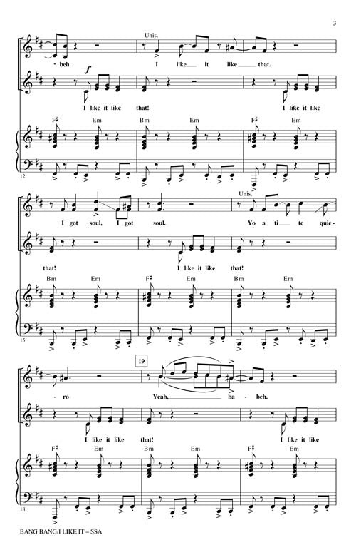 Bang Bang I Like It Ssa Pop Choral Series Jimmy Sabater