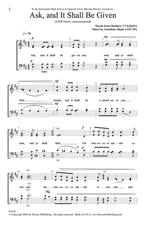 Ask And It Shall Be Given Publisher: Pavane Publishing Category: Choral Series: Pavane Choral Format: Octavo It is the poetry of the King James version that places this sacred text into the concert program. That, and...Regular price $23.99 -