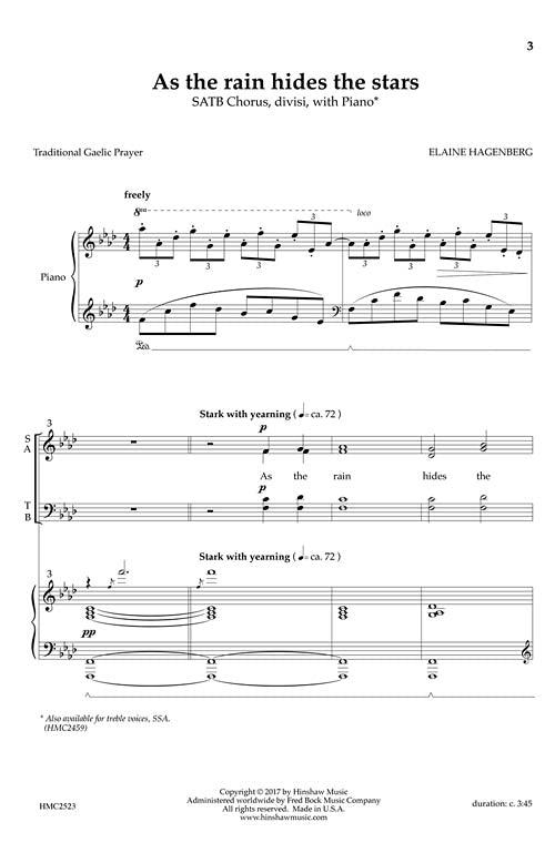 As The Rain Hides The Stars Hinshaw Music Satb Elaine Hagenberg