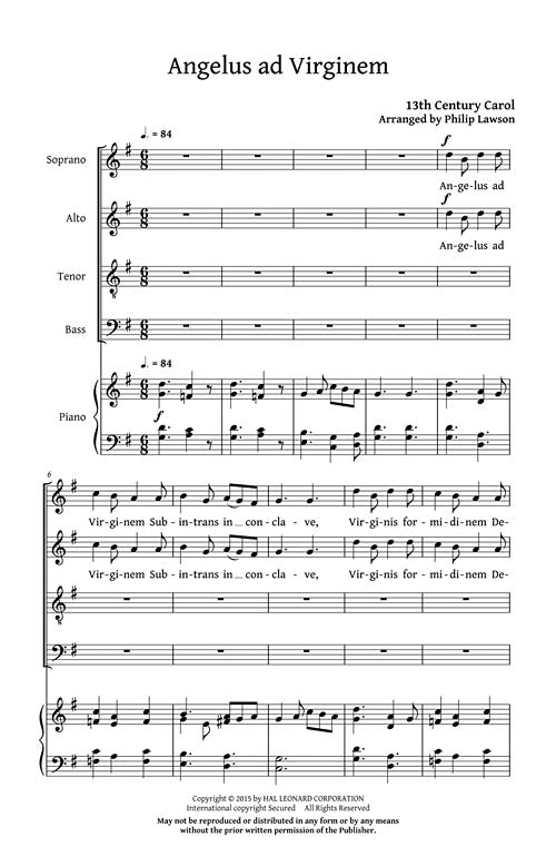 This Title Comes In Quantities Of Five (5) Copies(1 Order=5 Copies) Angelus ad Virginem SATB Philip Lawson arranges this 13th-century carol in a contemporary style that retains some of its ancient roots. Intertwining voices and two-against-three...Regular price $22.99 -