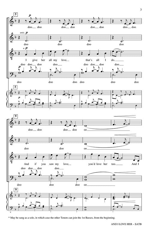 This Title Comes In Quantities Of Five (5) Copies(1 Order=5 Copies) And I Love Her Octavo SATB divisi a cappella Warm sounds of love her, love her, create a rich underlay for the solo and duet...Regular price $26.99 -