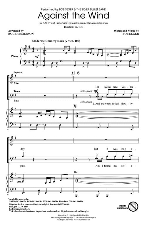 Against The Wind Pop Choral Series Ttb Bob Seger The Silver Bul