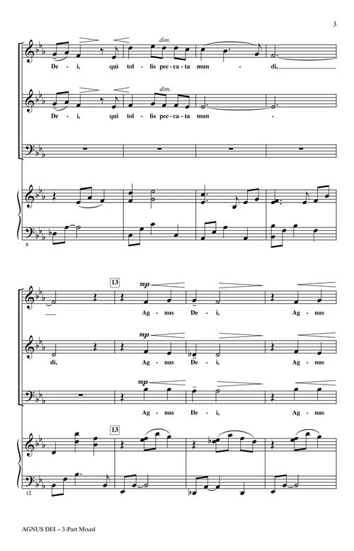 Agnus Dei Festival Choral 3 Part Mixed Audrey Snyder