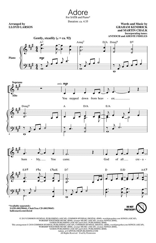 Adore Publisher: Daybreak Music Category: Choral Series: Daybreak Christmas Choral Format: Octavo From Chris Tomlin's latest Christmas album, this worship song welcoming the Christ Child has been crafted into a very approachable arrangement. Warmth adorns the...Regular price $29.99
