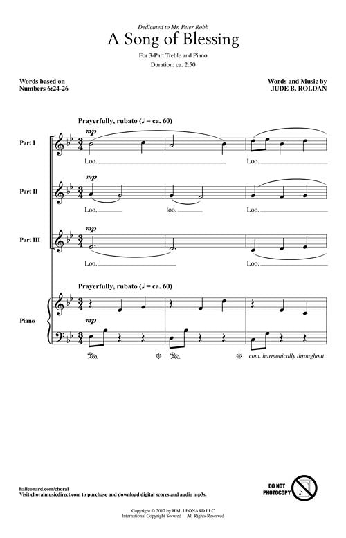This Title Comes In Quantities Of Five (5) Copies(1 Order=5 Copies) A Song of Blessing Composer: Jude Roldan Jude Roldan Publisher: Hal Leonard Category: Choral Series: Henry Leck Creating Artistry Format: Octavo Voicing: 3-Part Treble This...Regular price $25.99