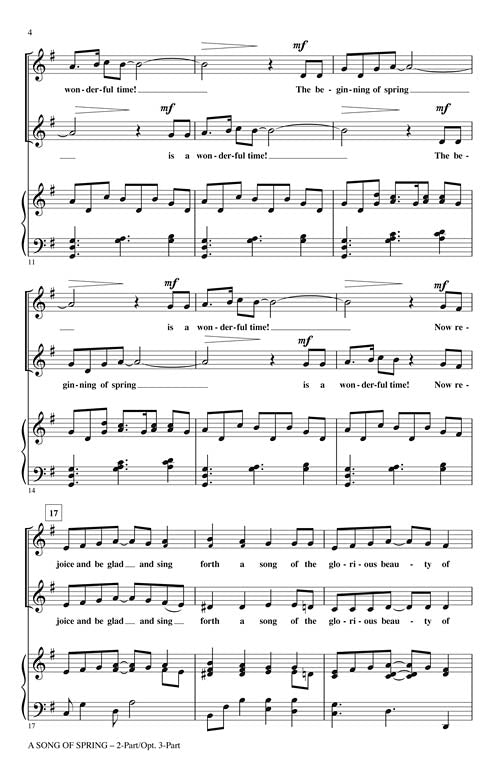 A Song Of Spring Discovery Choral 2 Part Optional 3 Part Laura