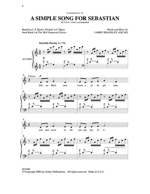 This Title Comes In Quantities Of Five (5) Copies(1 Order=5 Copies) A Simple Song for Sebastian Publisher: Gentry Publications Category: Choral Series: Gentry Publications Format: Paperback Almost too clever for words, Larry Shackley decided it was...Regular price $17.99