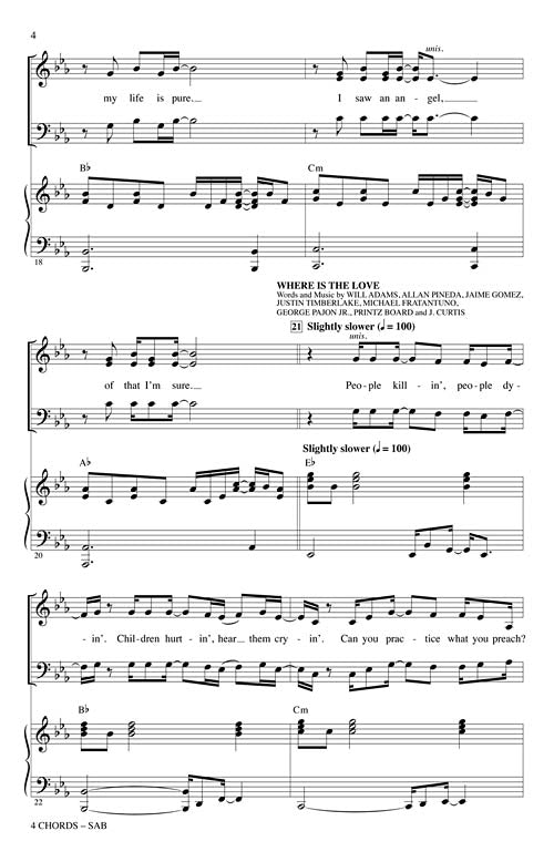 4 Chords A Choral Medley Pop Choral Series Sab Arranger Mark B