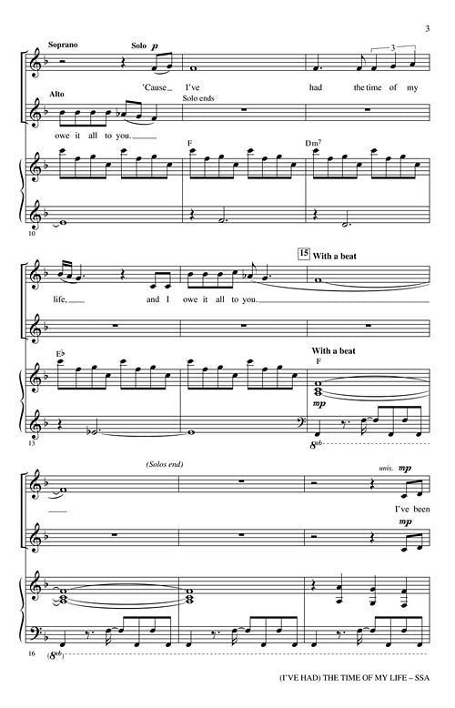 Ive Had The Time Of My Life Pop Choral Series Ssa Arranger Ma