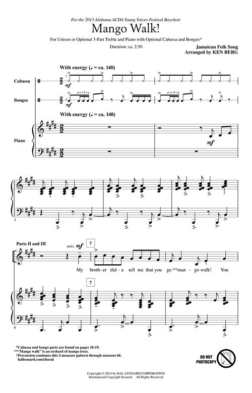 This Title Comes In Quantities Of Five (5) Copies(1 Order=5 Copies) Mango Walk! Unison or optional 3-Part This Jamaican folksong may be sung in unison or in three parts with accessible layered harmonies and delightful percussion...Regular price $32.99