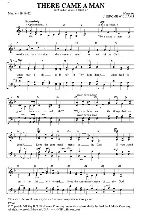There Came A Man H T Fitzsimons Co Satb A Cappella J Jerome Wil