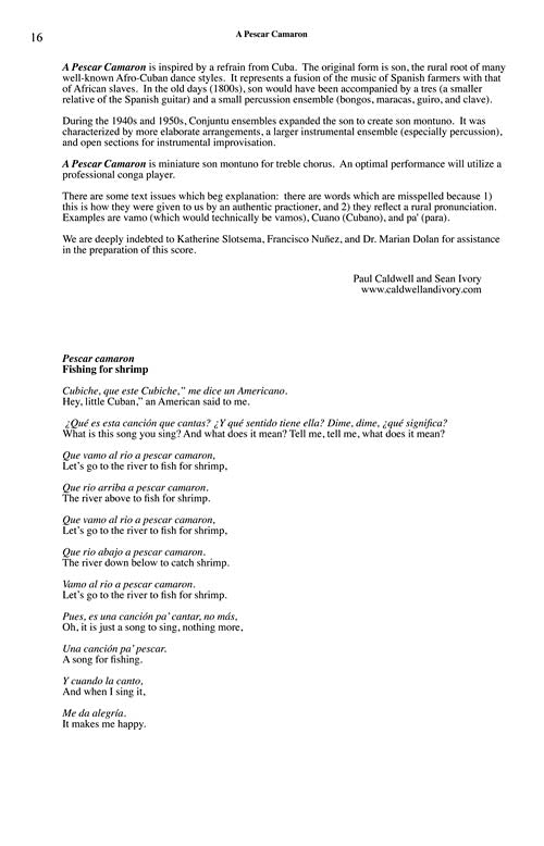This Title Comes In Quantities Of Five (5) Copies(1 Order=5 Copies) A Pescar Camaron Octavo SSA This lively Cuban folksong is a fusion of the music of the Spanish farmers with the enslaved Africans brought to...Regular price $27.99 -