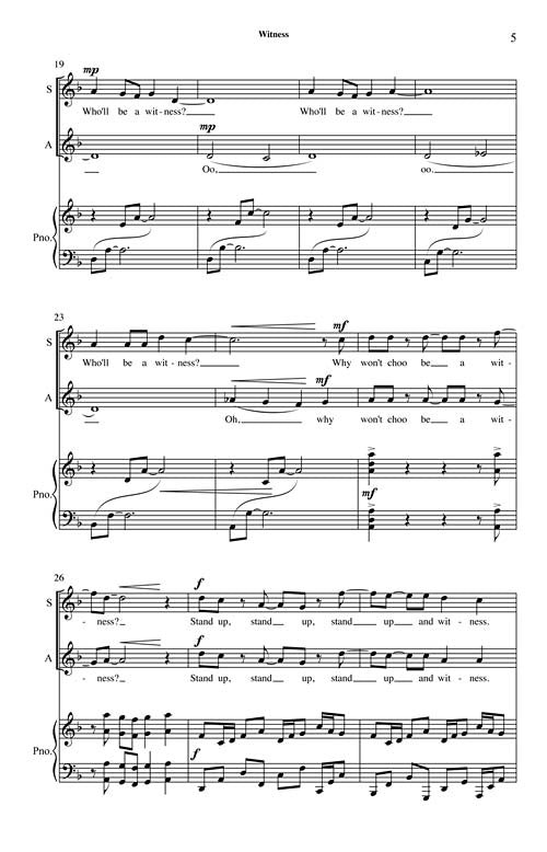 This Title Comes In Quantities Of Five (5) Copies(1 Order=5 Copies) Witness SSA Loosely based on a well-known spiritual, Witness is designed to call awareness to recent episodes of genocide, particularly as they have impacted the...Regular price $27.99 -