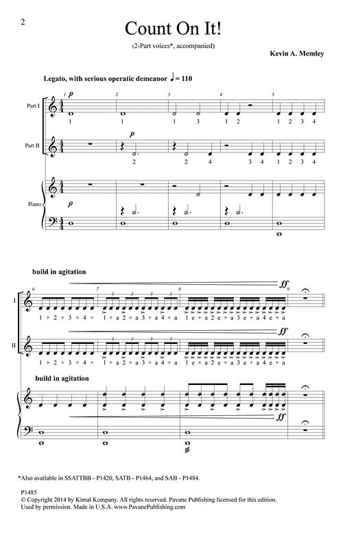 This Title Comes In Quantities Of Ten (10) Copies. 1 Order = 10 Individual Copies Count on It! 2-Part Here's a tune that is energizing and exciting - concert appropriate - that teaches singers how to...Regular price $28.99 -