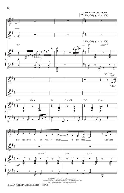 Frozen Choral Highlights Disney Choral 2 Part Kristen Anderson
