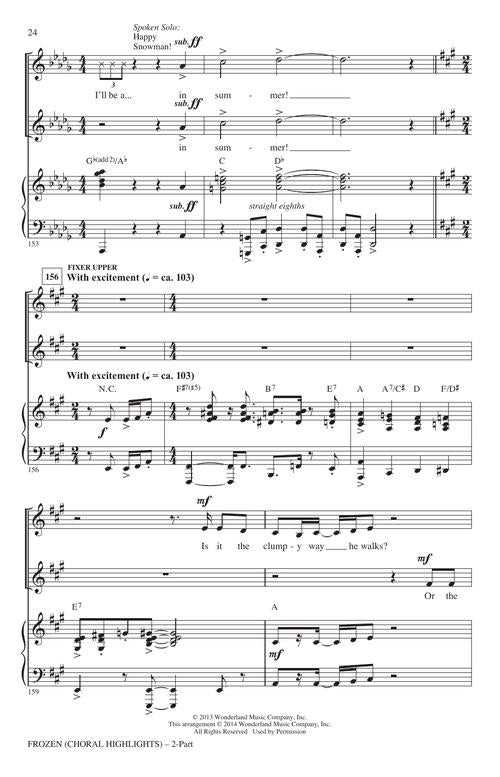 This Title Comes In Quantities Of Five (5) Copies(1 Order=5 Copies) Frozen (Choral Highlights) Octavo 2-Part The music from the hit Disney animated film is a charming return to the classic songs of the genre, but...Regular price $39.99 -
