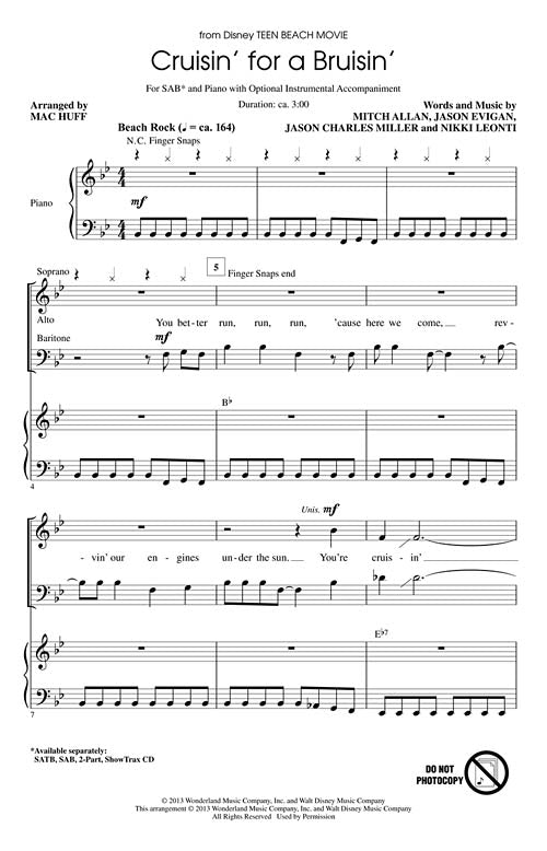 This Title Comes In Quantities Of Five (5) Copies(1 Order=5 Copies) Cruisin' for a Bruisin' from Disney Teen Beach Movie SATB Disney's Teen Beach Movie introduces the nostalgic surf sounds of the '60s to a new...Regular price $29.99 -
