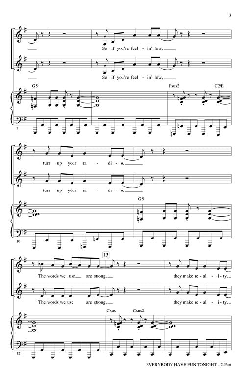 Everybody Have Fun TonightPublisher: Hal LeonardCategory: ChoralSeries: Pop Choral SeriesFormat: OctavoThis classic pop tune, full of energy and drive, is given a techno-pop feel with a relentless synthesizer part, cool rhythm section and tight vocals. A...Regular price $27.99 -