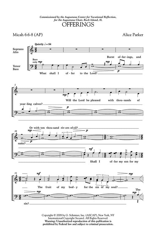 Offerings Choral SATB a cappella Alice Parker