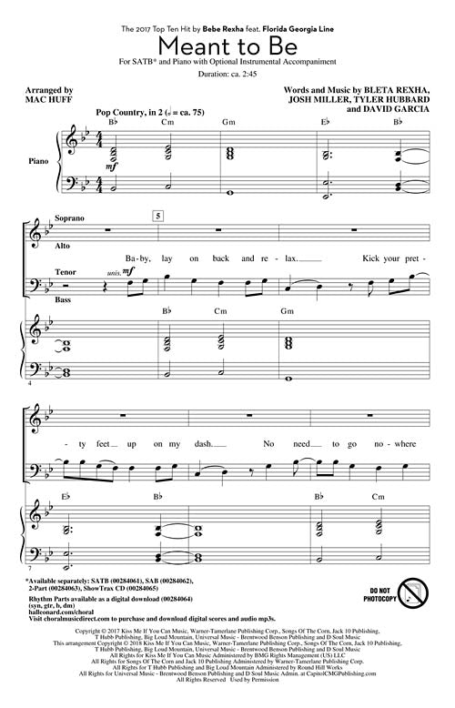 Meant to Be Pop Choral Series SATB Bebe Rexha