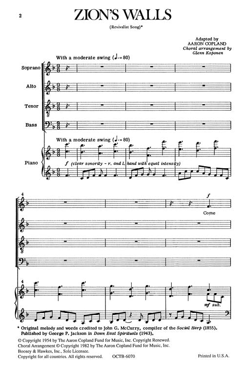 Zion's Walls Boosey & Hawkes Sacred Choral Arranger: Aaron Coplan